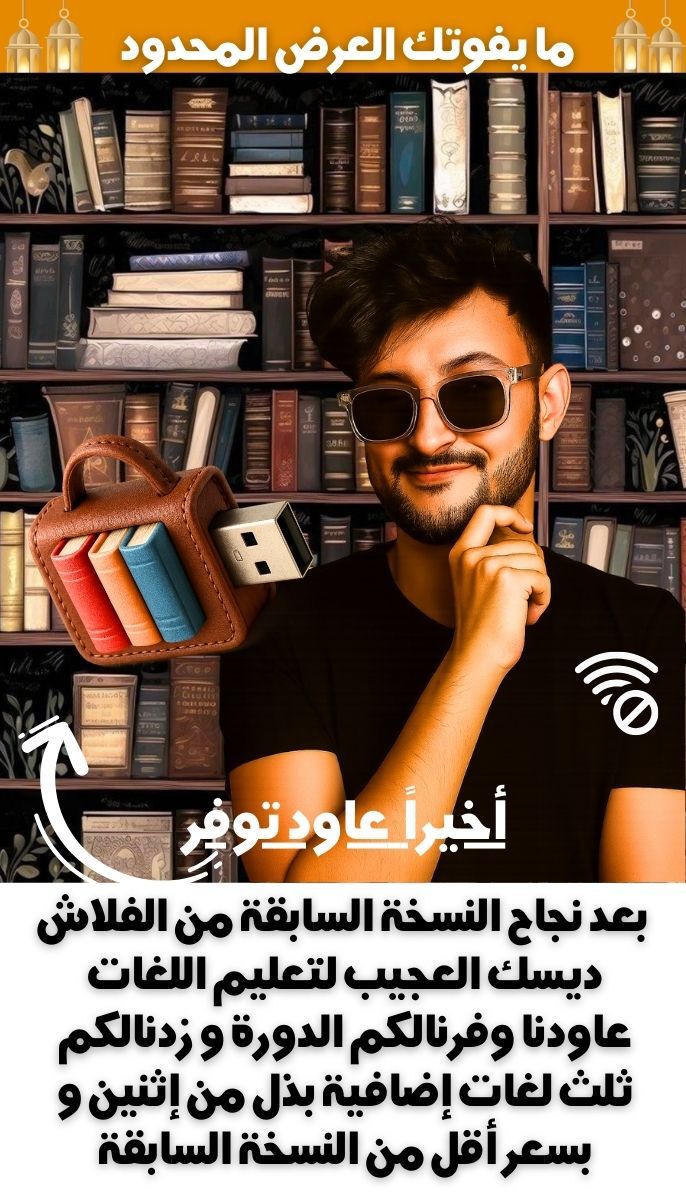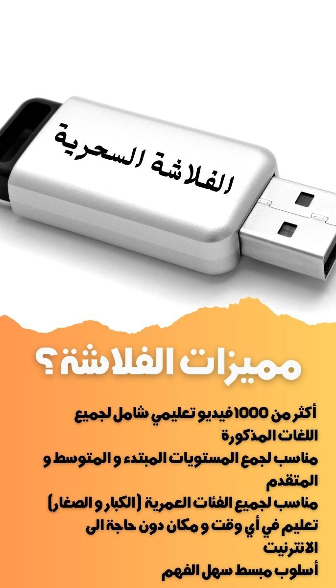 تعليم 5 لغات عالمية في فلاشة وحدة أكثر من 1000 فيديو و 50 كتاب .